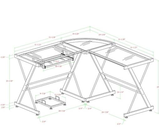 - Keyboard tray: 3” H x 11.75” D x 21” L