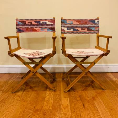 Gold Medal Vintage Mid Century Modern Retro Wood Aztec Western S-West Canvas Director Chair Pair of Vintage Commander Directors Director Folding Patio Chair Mid Century Modern Scandinavian Canvas...