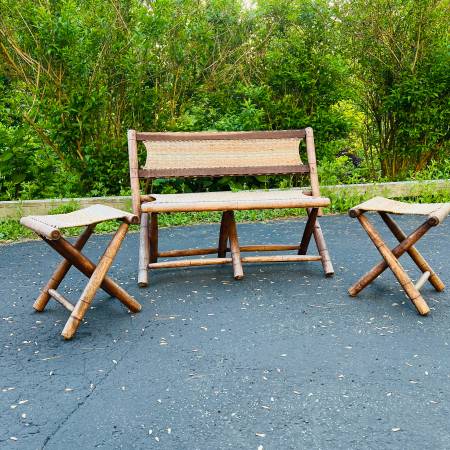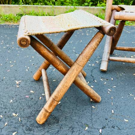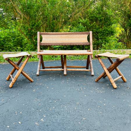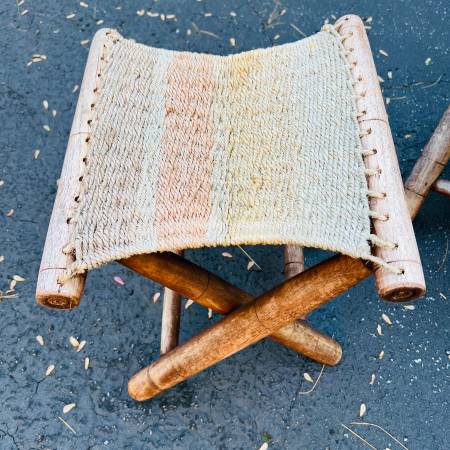 Mid Century Boho Patio Bench Stool Set Foldable Solid Wood Folding Stool - Vintage Stool - Midcentury Modern Seating 1960s, 60s, 1970s, 70s, Panton, Knoll, George Nelson, John Jeliff Herman Miller,...