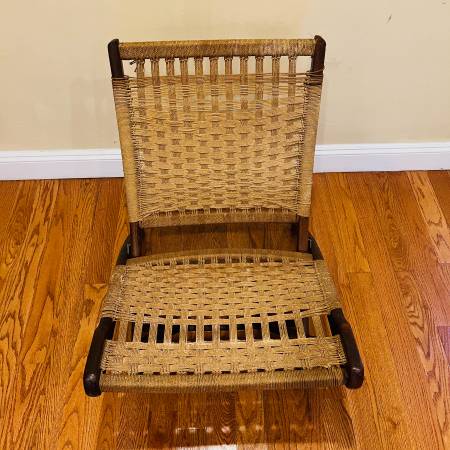 Vintage MCM 80's Hans Wegner style folding rope lounge chair Made in...