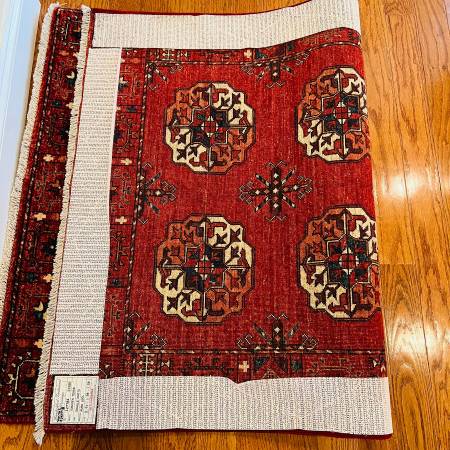 Authentic Hand Knotted Vintage Afghan Turkmen Patnus Wool Area Rug $500 FIRM Approx. 5 feet x 4 feet 1960s, 60s, 1970s, 70s, Panton, Knoll, George Nelson, John Jeliff Herman Miller, Arne Jacobsen,...