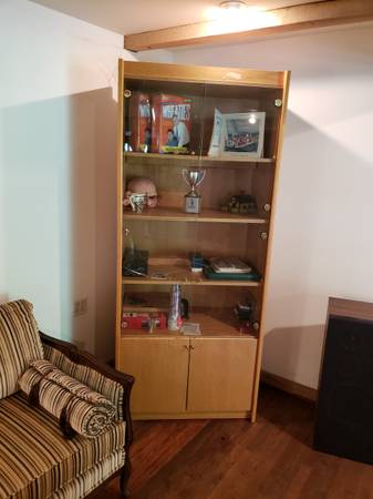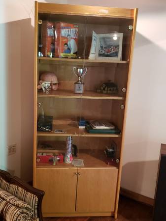 Showcase your favorite china, books, memorabilia or use as liquor bar and more. Beautiful well-built blonde wood cabinet, with hidden lamp backdrop lighting. Very solid, multi-faceted and well worth...