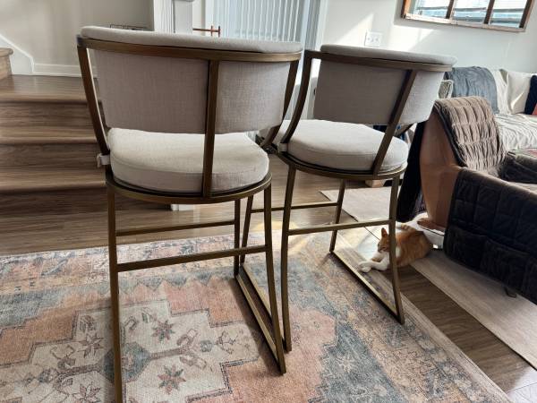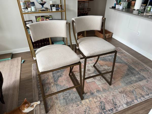 Selling two matching upholstered Allister barstools from Ballard Designs. These are currently selling new online for $479 each ($958 total), asking $150 OBO for this set!