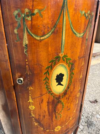 Beautiful vintage cabinet with lovely painted detail. Good condition. 10" deep, 20" wide, 32" high