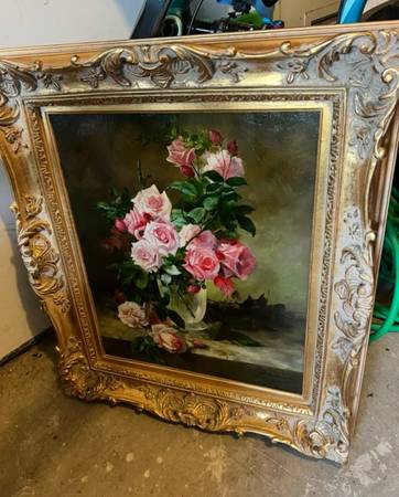 One large armoir, China cabinet, marble coffee table, artwork, lounge chair. Pickup only!