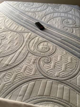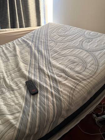 Head and foot and height adjustable with remote control. Been carefully covered/ mattress perfect. New looking. Deep mattress. Good for allergies.