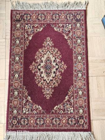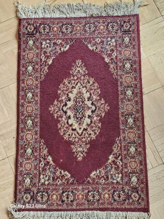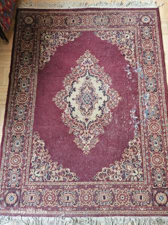 Large rug measures 63" x 48" There are some threads pulled up on the right side, as seen in photo