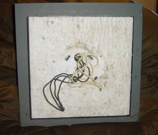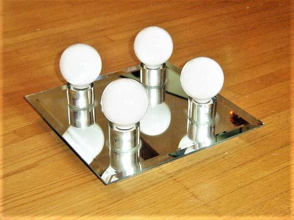 Price is firm. It is available and will only communicate through CL email.. 13" square beveled mirrored with four bulbs. Chip under one corner. Not sure of exact age, but definitely older. Original wiring.