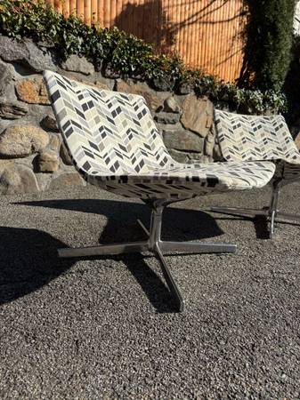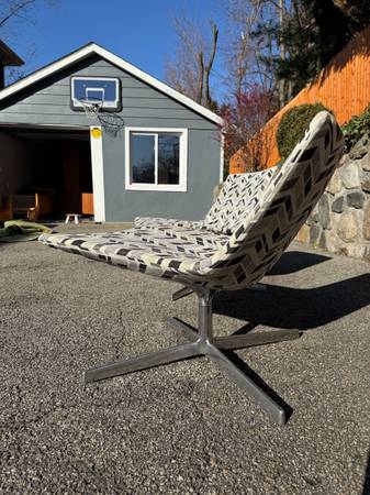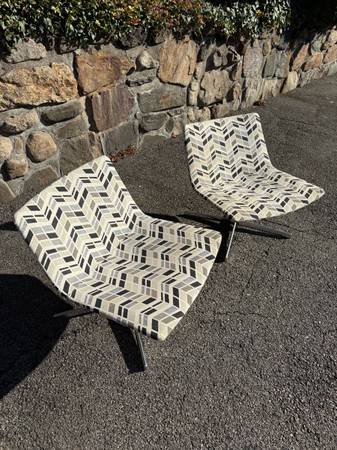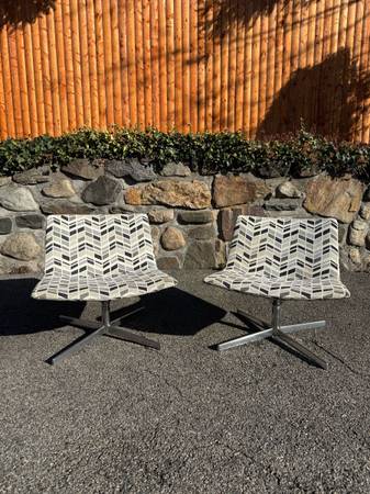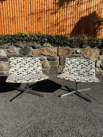 These elegant chairs are in excellent condition and exceptionally comfortable. They feature a 4-star metal base with a smooth swivel function. The upholstery is like new, with no stains or tears.