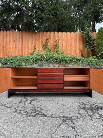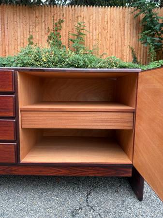 An authentic rosewood mid century modern credenza, c. 1970s.