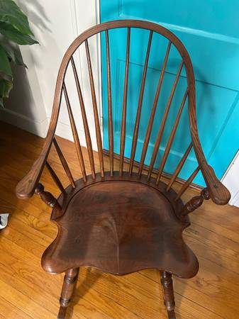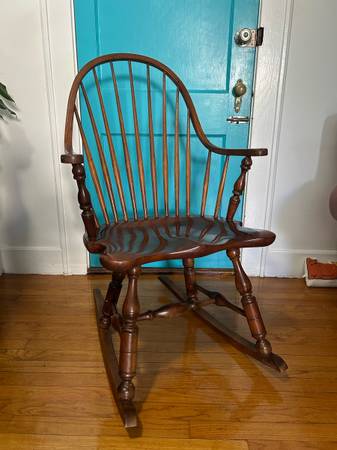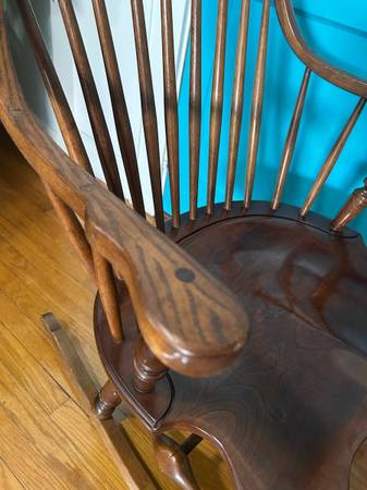 Stickley is a renowned American furniture company known for its handcrafted furniture, particularly in the Arts and Crafts and Mission styles. While the company produces a variety of furniture, including rocking chairs, this specific chair , with its continuous arm and spindle back, is consistent with designs found within the Stickley collection, known as the Continuous Arm Rocker.