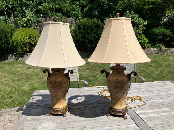 Beautiful ceramic lamps. Bought at Peter Andrews specialty shop in Long Island. Both lamps and shades are in excellent condition. 2-Way switch (on/off). $150 for both lamps. Dimensions: 30" High 15"...