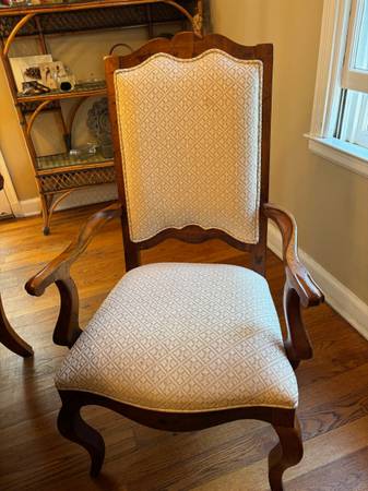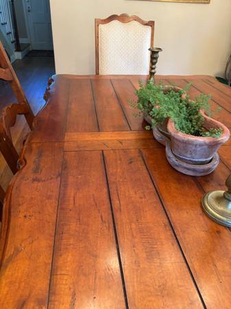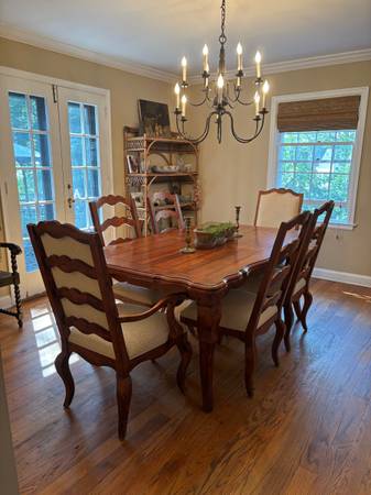 Beautiful solid 30 year old dining room table and chairs. Super comfortable. Non-smoking home. Well cared for.