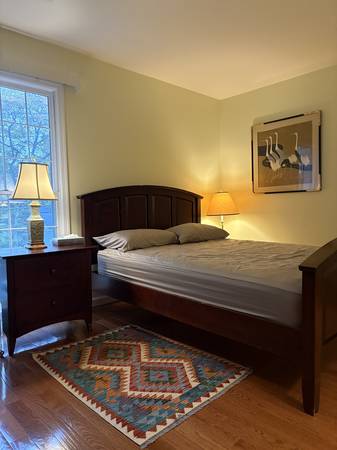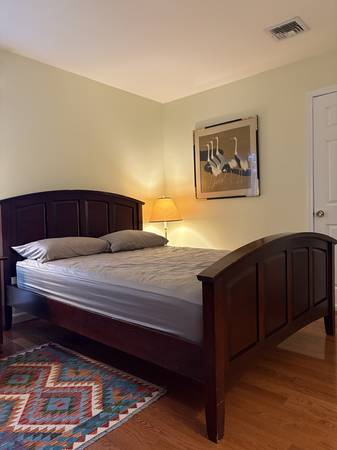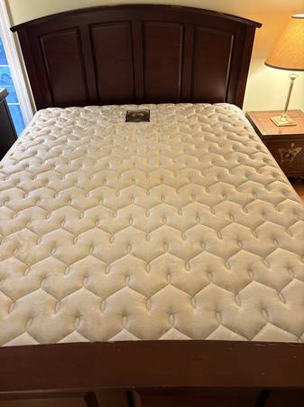 Queen Size bed with Posturepedic mattress Dresser Armoire Night Stand x 2