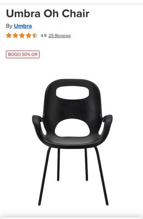 I have 2 black and 2 white chairs. The price is for all 4. They are super comfortable and stack easily on top of one another.