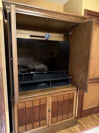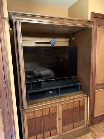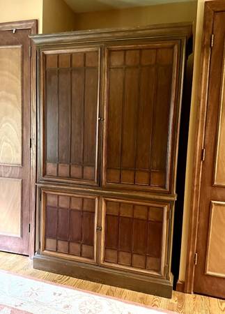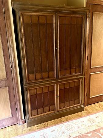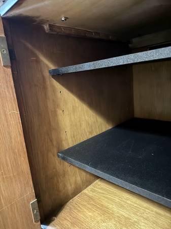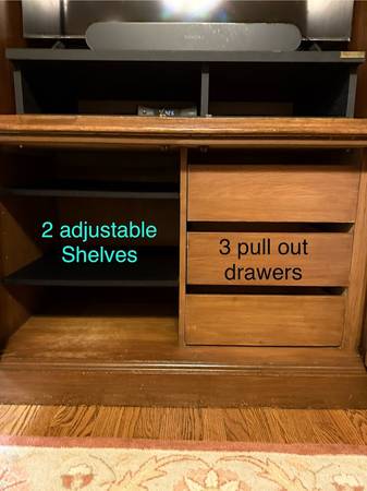 bottom has 2 adjustable shelves and 3 pull out drawers.