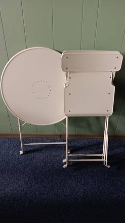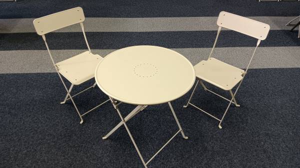 Versatile Ikea patio set table and two chairs, made of powder coated steel, ideal for patio or balcony, foldable for easy storage. Very easy driveway pick up....