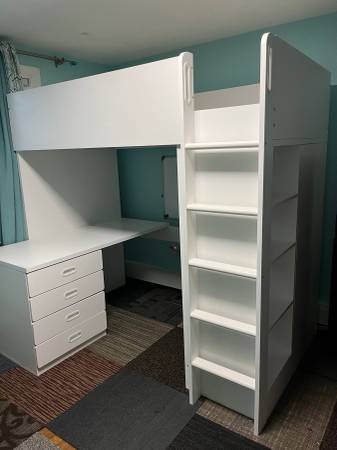 IKEA Loft bed, white with desk, 4 drawers, plus storage, Twin -...