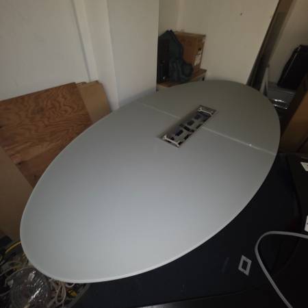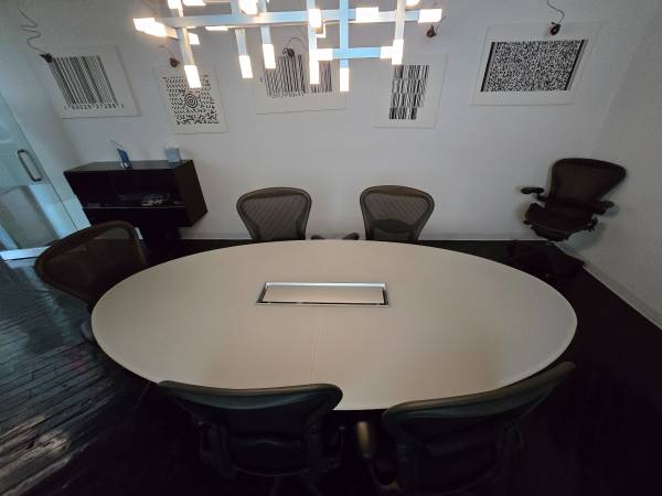 Up for sale is a used 4x8 conference room table with built-in electric wiring, located in Downtown Yonkers, NY. Perfect for upgrading your office, coworking space, or home setup. Chairs in photo not included.