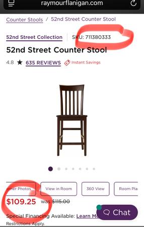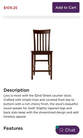 52nd Street Counter Stool Solid wood High Quality L: 18" x W: 22" x H: 43" New MSRP $120 each! Bar stool, chair, kitchen, living room, dinning room. Cherry