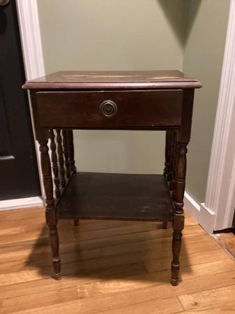 NICE DETAILED PIECE WITH 1 DRAWER NEEDS TLC AGE UNKNOWN APPEARS TO BE MAHOGANY $$$$$$$$ MAKE AN OFFER $$$$$$$$$$$