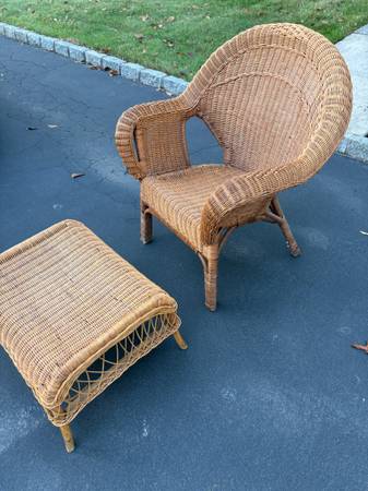 Vintage Wicker and Rattan Chair with Matching Ottoman
