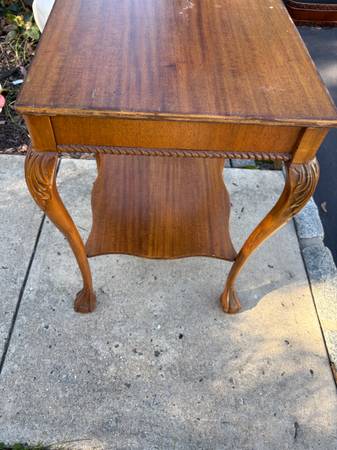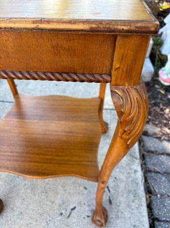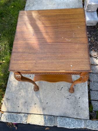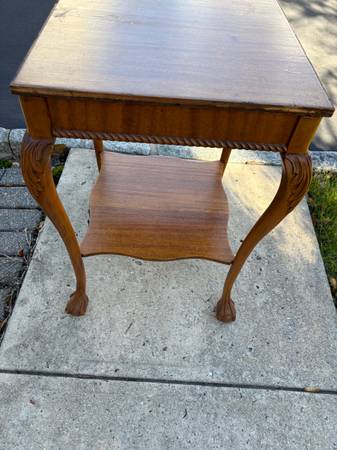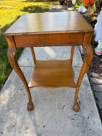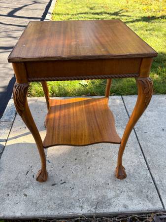 17" Square with Leg bump out. Top is 16" Square. 25 3/4" High Beautiful detail. Vintage Wood Parlor Table Fern Plant Stand Accent Side End Table Lower Shelf Carved Legs Claw Foot