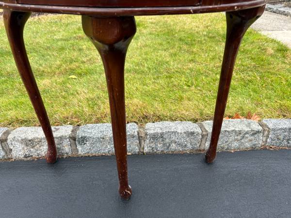0Wood Half Moon Console Table With Pull Out Drawer- Needs Refinishing - 29" wide x 14" deep x 27.5" high