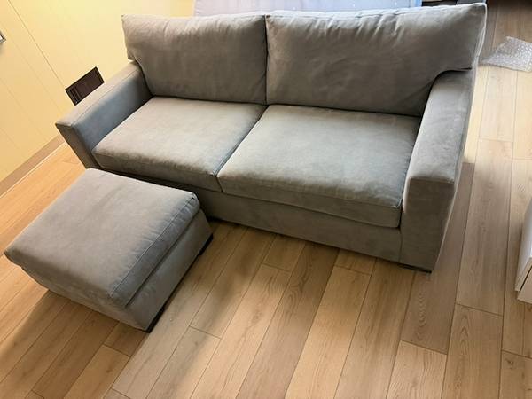 1. Crate and Barrel Axis Couch and Ottoman (grey microfiber, rarely used, excellent condition): [$800]
