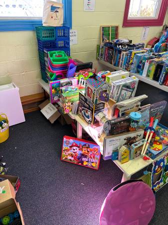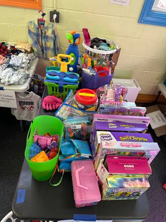 Items we’re accepting: toys, games, books, puzzles, baby gear, strollers, small household items, children’s furniture, sports gear, winter gear, and children’s clothing (sorted by age, bagged, and labeled).