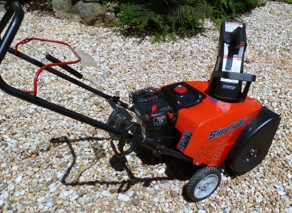 This Simplicity single stage snow blower has a 163cc Brigs & Stratton engine with electric start. It is a plug in type (extension cord not included). It has had low use and is in great...