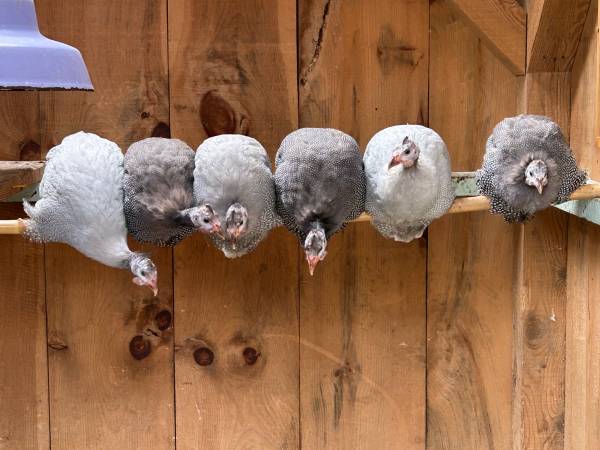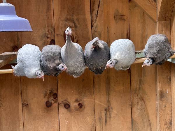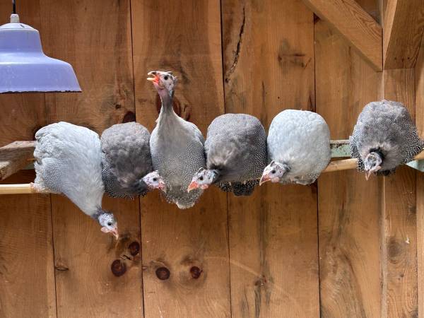Six Guinea Fowl available - 3 months old Three lavender and three pearl gray Located in Suffern, New York
