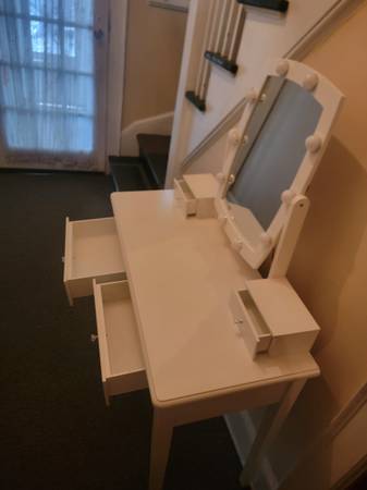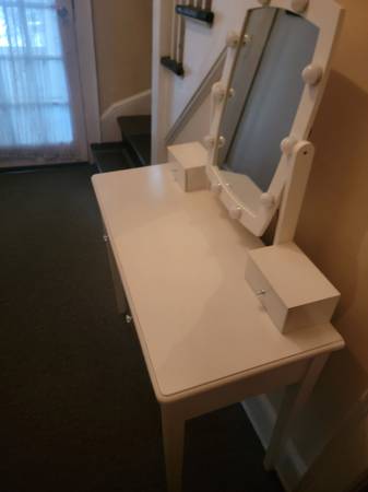 Makeup vanity desk in excellent condition, except for missing the plug to make the mirror lights work .