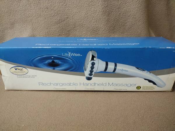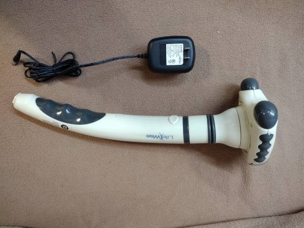 Electric handheld massager with charger. Gently used, battery still holds charge. Also can use plugged in massage sore muscles exercise rehab