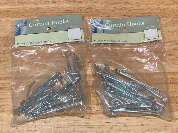 2. Two unopened packages of 3" curtain hooks with 1" heads. Asking $3 each