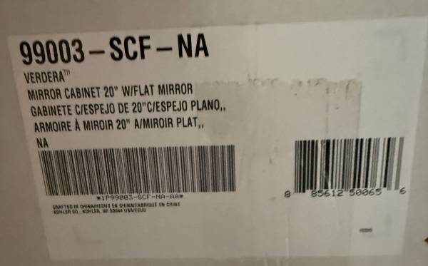 Model 99003-SCF-NA, crafted in China for Kohler Co. NEW IN BOX BOUGHT NEW FOR $550 I HAVE 2 (sold separately) IF YOU NEED A PAIR/SET Verdera 30" x 20" Reversible Mirrored Medicine Cabinet with Plain...