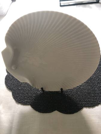 Vintage round ceramic seashell white platter scalloped