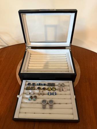 🎁 Men’s Two-Level Wood Valet Box with Vintage Cufflinks