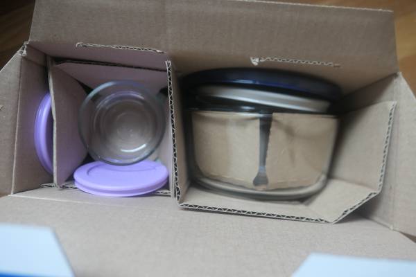 5 glass bowls with 5 Snugfit plastic lids. Bowls fit into each other when stored without their lids. Lids are navy, light mint green and lavender. Oven/Microwave/Freezer/Dishwasher safe. Made in the USA. Selling as I have way too many storage bowls.