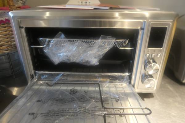 Sells for $218 so my 31% off price is more than fair. Comes with original accessories (crumb tray, fry basket, food tray, wire rack, rotisserie fork set, rotisserie handle, recipe book, user manual) but no box.