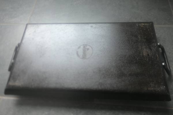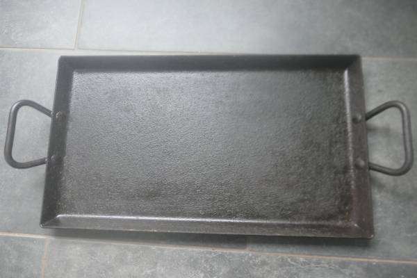 Used once and then seasoned 10x @ 350 degrees in the oven. Lighter-weight alternative to cast iron with the same non-stick properties. Fits on 2 stovetop burners. Product Dimensions: 21.43"L x 10.25"W x 2.62" H 7.8 lbs. Selling as I am slowly downsizing.