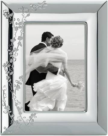This silver kate spade 8" x 10" frame has a delicate foliage design on one side of the frame