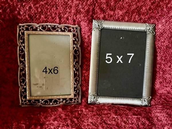 nice photo frames - 4x6 and 5x7 - $5 each. Easel back. Metal, Wood, embellished, many styles and colors to choose from. Pick up in Scarsdale