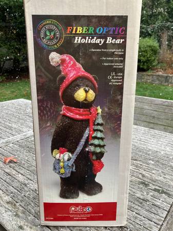 Puleo fiber optic resin bear holiday decoration. Rare, only a few hundred made. Powered by one halogen light, colors rotate.