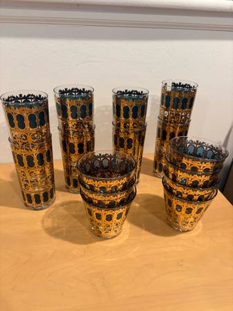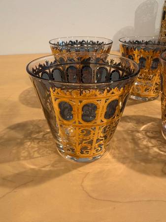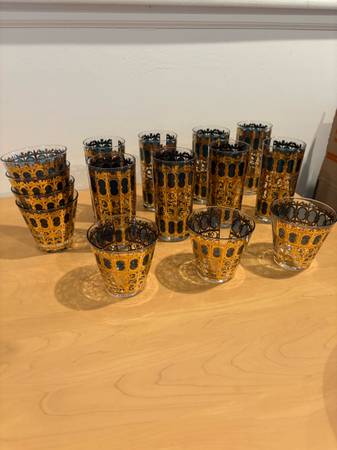 Set of 8 beautiful tall cocktail glasses and 7 short glasses hardly used. Gold plated! They’ve been sitting in my mom’s china cabinet for years. Make an offer Cash and local pickup only