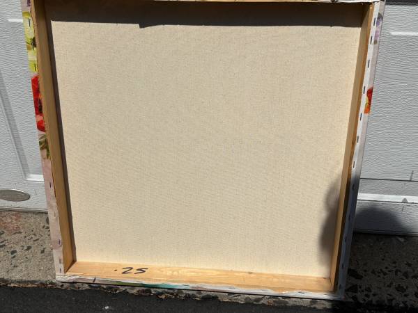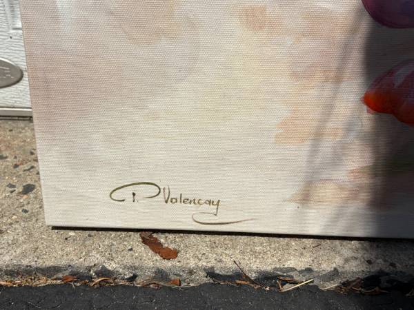 0Colorful Floral Artwork Painting Paint Still Life of Flowers in Vase Signed Paul Valencay 19.5” Square Canvas