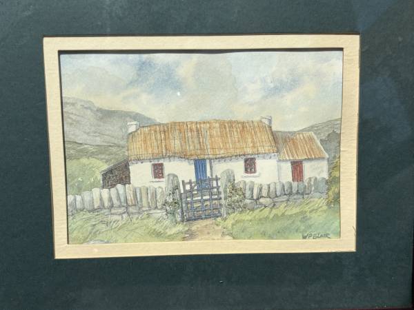 Framed Watercolor Painting Traditional Irish Cottage Signed W.P. Blair Insert 8x5 Framed 13x11 William P. Blair