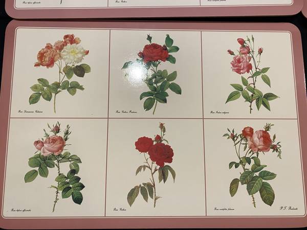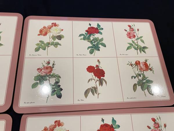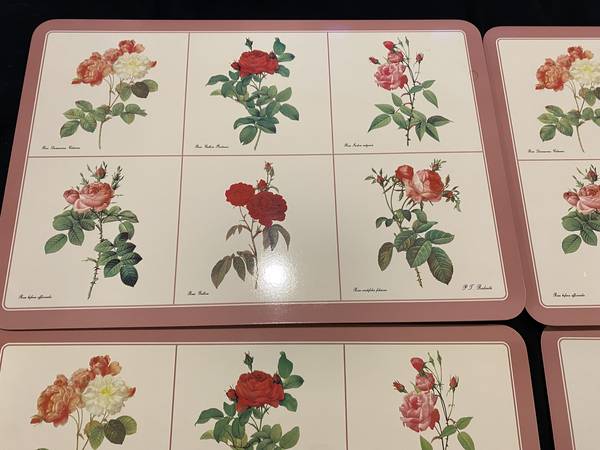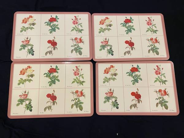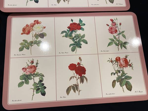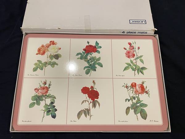 Jason’s Products Roses Designer Collection Placemats (Set of 4) Rectangular 17” x 11.5” Acrylic Finish over image with cork backing. In original box. Box shows signs of wear. Made in Aukland, New...