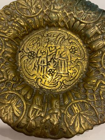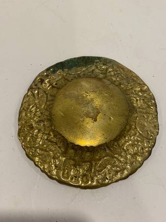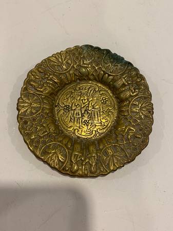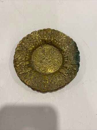 Antique Middle Eastern Islamic Cast Brass Ornate Dish 4.5”