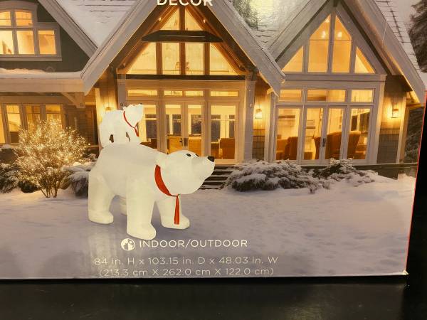 NEW Polar Bear Duo Christmas Inflatable Blow Up 7 ft H x 8 ft L (84” x 103.15” D) St. Nicholas Square